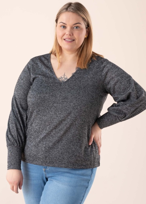 Neįtikėtinai minkšta, su žaismingu blizgančiu raštu megzta „Vila“ palaidinė „Infa“ yra patogi, šilta ir maloniai elastinga. Graži „V“ formos iškirptė su ilgais elastingais apvadais sukuria įspūdingą bendrą vaizdą, o tiesaus kirpimo modelis laisvai krinta. Modelio ūgis – 167 cm, jis dėvi M dydį. Medžiaga: poliesteris 97 %, elastanas 3 %. Spalva: tamsiai pilka.